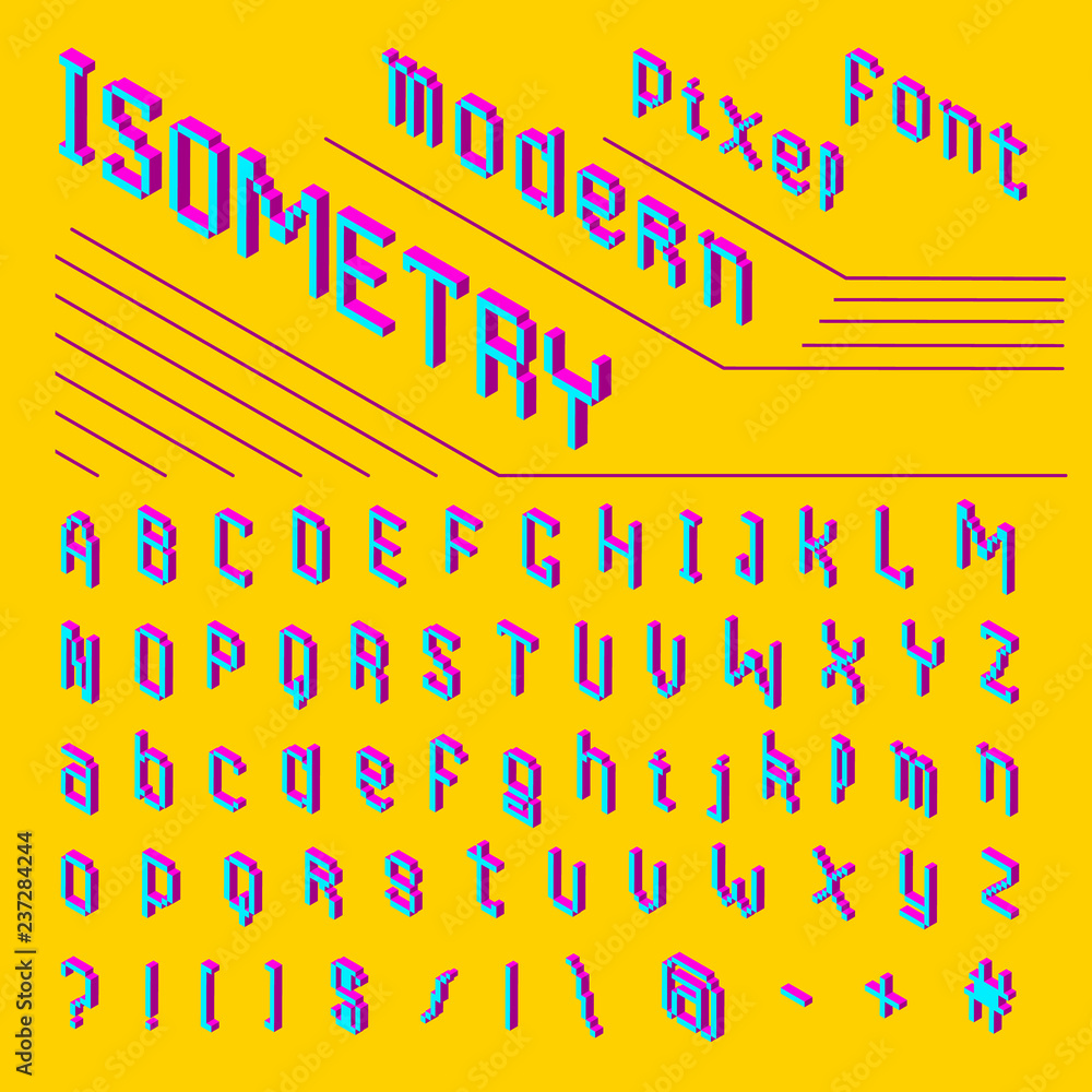 Pixel Isometric Font 8 Bit Symbols 3d Digital Video Game Style Letters And Numbers Vintage Retro Typeface Abc Error Computer Video Vector Alphabet Futuristic Design Stock Vector Adobe Stock